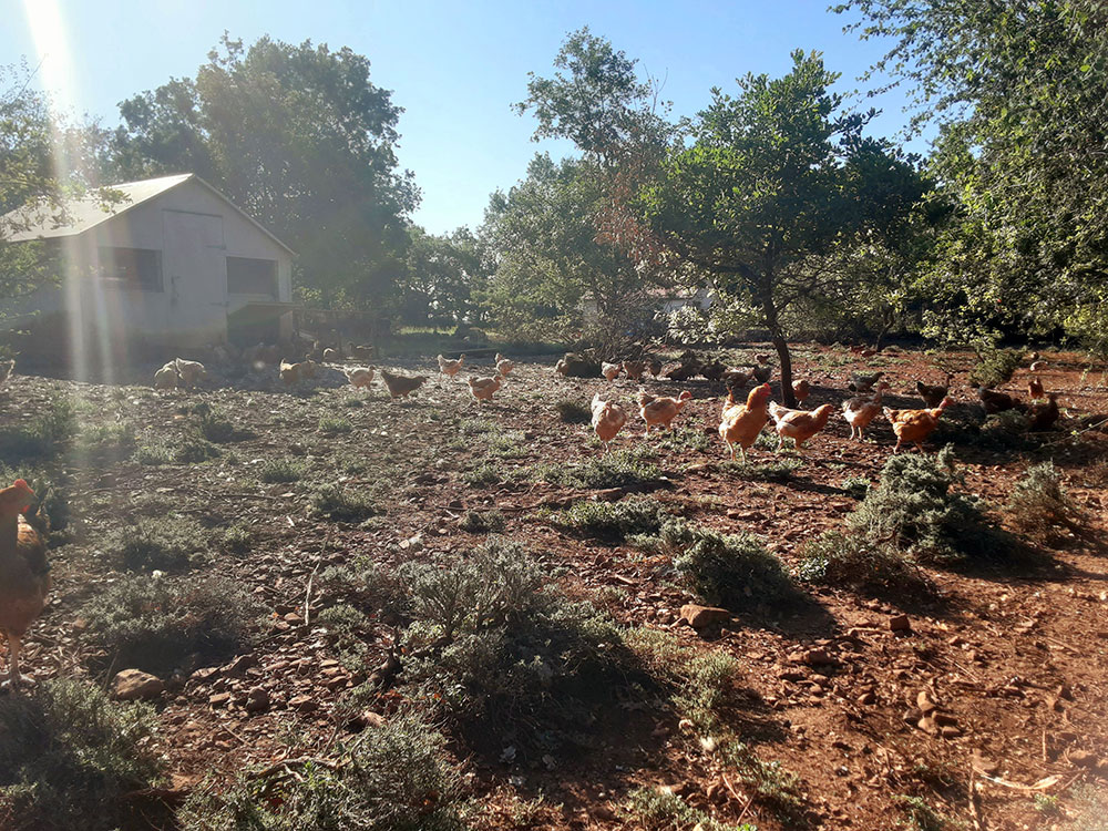 750 canards gras (mulards) gavés au maïs entier pendant 12 jours puis abattus et transformés sur place / 1000 poulets de chair évoluant en plein air, nourris au blé et abattus sur place à partir de 125 jours / 100 chapons engraissés au blé et au lait entier, abattus sur place / environ 40 bovins allaitant de la race Galloway élevés en plein air intégral sur le Lévézou et nourris exclusivement à l’herbe / 60 hectares de prairies et de pâturages permanents / Vente directe à la ferme, livraisons, vente au magasin de producteurs « Au marché Paysan » de Millau et au Marché des Arceaux de Montpellier avec le Gie « Fermes des grands causses ».