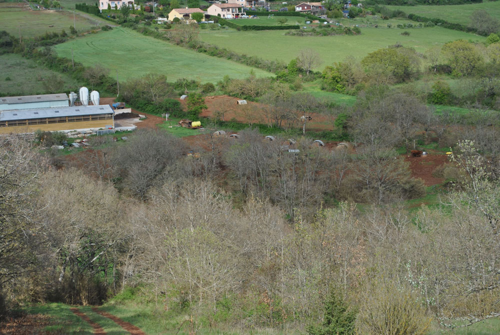 Une petite exploitation de 46 hectares située sur le causse rouge, nous sommes trois associés, nous élevons des porcs charcutiers et un petit troupeau de bovins viandes, nous transformons toutes les semaines trois porcs en frais et en sec dans notre atelier à la ferme et nous le livrons deux fois par semaine au Marché Paysan.