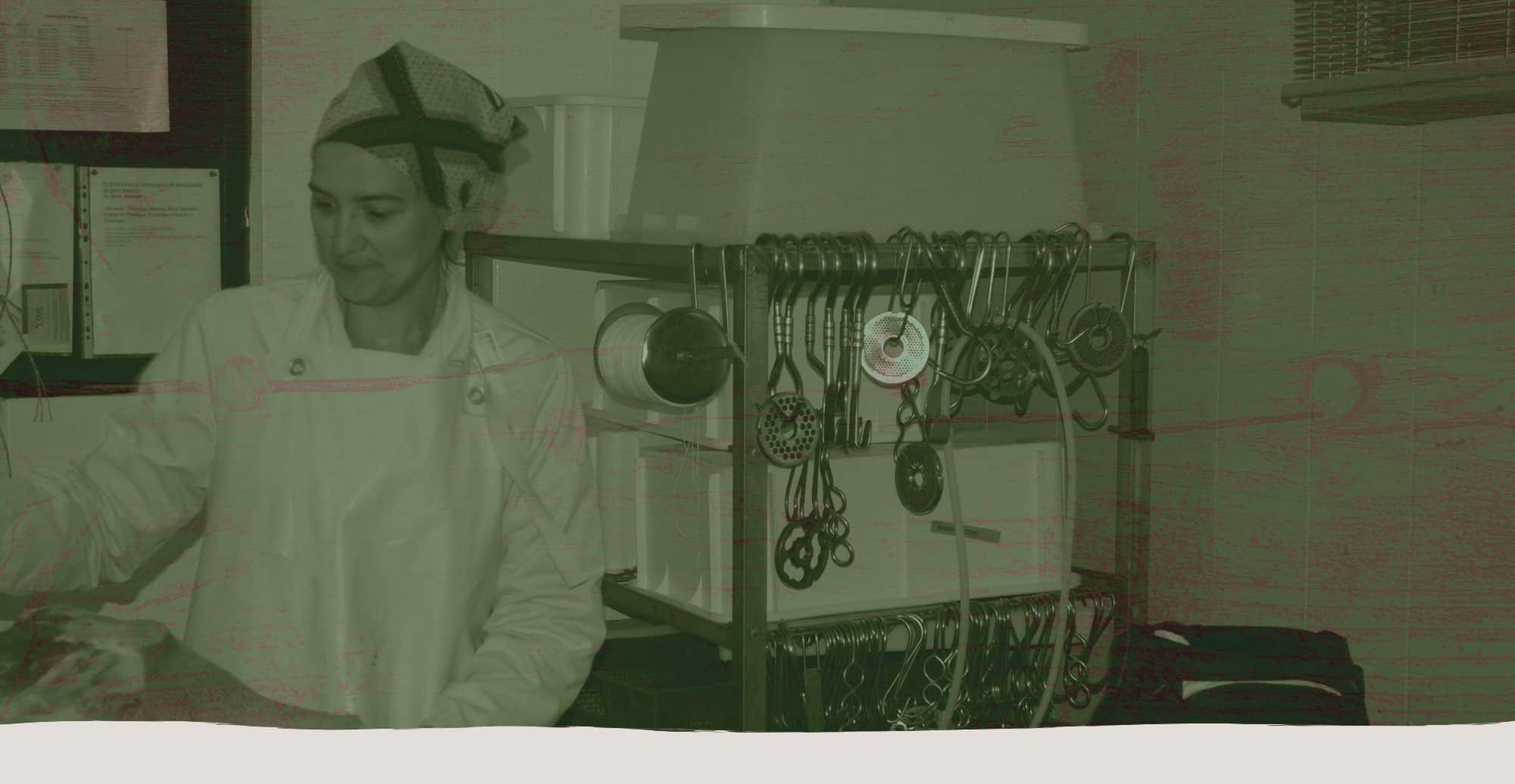 Une petite exploitation de 46 hectares située sur le causse rouge, nous sommes trois associés, nous élevons des porcs charcutiers et un petit troupeau de bovins viandes, nous transformons toutes les semaines trois porcs en frais et en sec dans notre atelier à la ferme et nous le livrons deux fois par semaine au Marché Paysan.