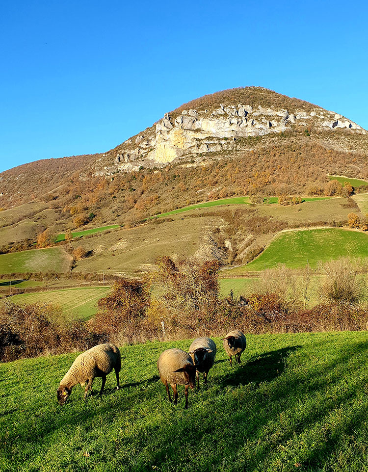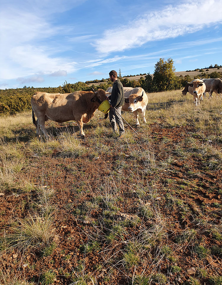 Ferme située dans les contreforts du Larzac à Saint-Georges-de-Luzençon, nous sommes trois associés et deux salariés en production ovins viande et vaches Aubrac nos animaux pâturent toute la saison estivale et rentrent au chaud l’hiver pour les mises bas. Nous produisons nos céréales et notre pâture pour avoir une autonomie sur l’alimentation de nos animaux.