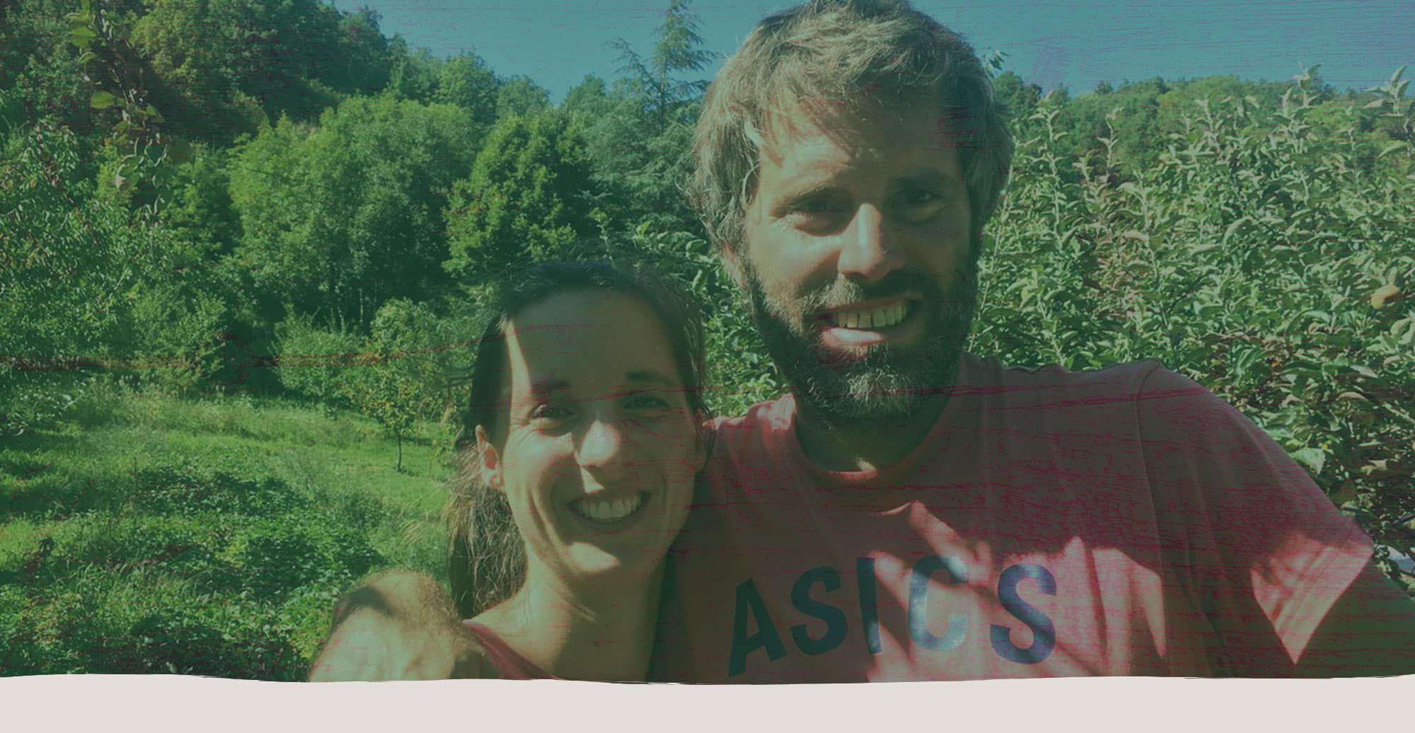 Nous sommes Margot et Mathieu, maraichers Bio au Viala-du-Tarn en fond de vallée. Nous produisons des fruits légumes diversifiés et nous transformons les surplus en confitures. Nous travaillons à deux et nous avons un temps plein saisonnier. Nous avons 2500 m2 de serres sur trois sites différents à une distance de 4 km maximum m où nous ne travaillons pas le sol, uniquement à la Grelinette et Campagnole. Et 2 Ha de plein champ pour les cultures comme patate douce, courge et patate…Notre commercialisation se fait uniquement à Millau.